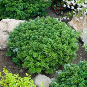 Ez a gyönyörű fenyőfa különleges, lila árnyalatú tűivel és szimmetrikus formájával bármely kert ékessége lehet. Könnyen nevelhető, és a tél során is megőrzi díszítő értékét, így ideális választás a színesebb tájak kialakításához.