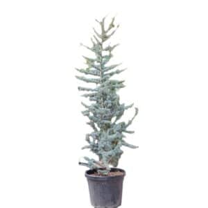 A levelek tűszerűek, 1-2 cm hosszúak, sűrűn helyezkednek el a hajtásokon. A lombozat színe tavasztól nyárig élénk kékeszöld, ősszel pedig szürkéskék árnyalatot ölt. A levelek textúrája sima, és a növény egészséges állapotában fényes megjelenésű.